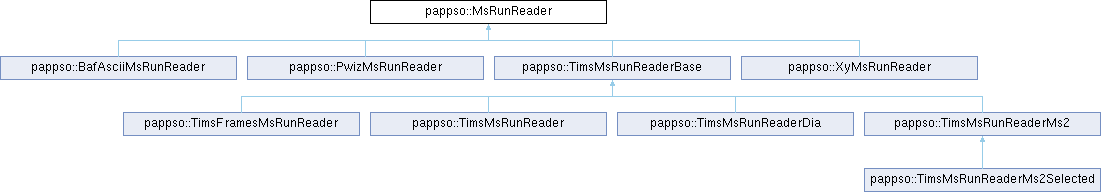 Implemented in pappso::BafAsciiMsRunReader, pappso::PwizMsRunReader, pappso::TimsFramesMsRunReader, pappso::TimsMsRunReader, pappso::TimsMsRunReaderDia, pappso::TimsMsRunReaderMs2, and pappso::XyMsRunReader.