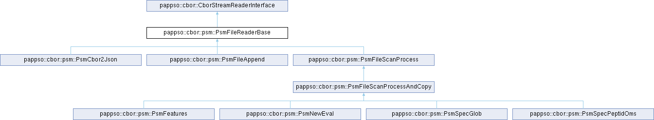 Reimplemented in pappso::cbor::psm::PsmCbor2Json, pappso::cbor::psm::PsmFeatures, pappso::cbor::psm::PsmFileAppend, pappso::cbor::psm::PsmFileScanProcessAndCopy, pappso::cbor::psm::PsmNewEval, pappso::cbor::psm::PsmSpecGlob, and pappso::cbor::psm::PsmSpecPeptidOms.